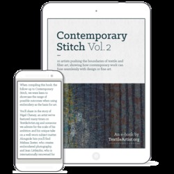 Sam en Joe Pitcher van TextileArtist.org vroegen mij begin dit jaar of ik mee wilde werken aan een e-boek over hedendaags 2D textiel kunst met hand en machinale borduurtechnieken. In Contemporary Stitch Volume 2 vertellen TIEN TEXTIEL KUNSTENAARS over hun werkwijze, hun kunstenaarspad plus waarom en hoe ze hun werk presenteren in de wereld van de hedendaagse moderne kunst. Dit boek brengt een adembenemend scala aan moderne kunst, die allemaal wordt gemaakt met behulp steek technieken. Mocht u dit boek willen bestellen dan kan dat via Contemporary Stitch 2 e-book http://resources.textileartist.org/products/contstitch2?ref=570e8e1066e53 Andere e-boeken: E-books page: http://resources.textileartist.org/collections/e-books?ref=570e8e1066e53 Textiles Re:imagined e-book: http://resources.textileartist.org/products/textiles-re-imagined?ref=570e8e1066e53 Response to Landscape e-book: http://resources.textileartist.org/products/textiles-a-response-tolandscape?ref=570e8e1066e53 Inspired by nature e-book: http://resources.textileartist.org/products/textile-art-inspired-by-nature?ref=570e8e1066e53 Contemporary Stitch 1 e-book: http://resources.textileartist.org/products/contstitch1?ref=570e8e1066e53